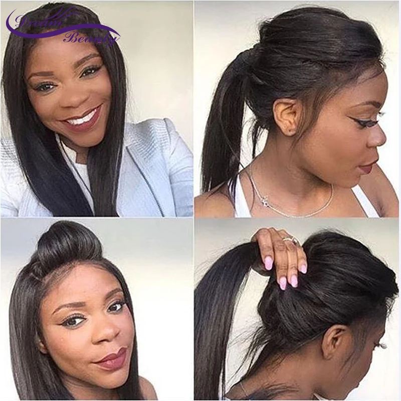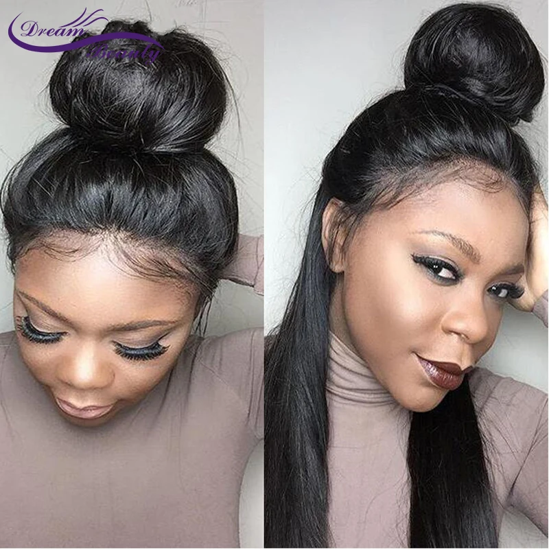 Dream Beauty 150 Density remy Brazilian silky Straight Pre Plucked 360 Lace Frontal Wig With Baby Hair Bleached Knots