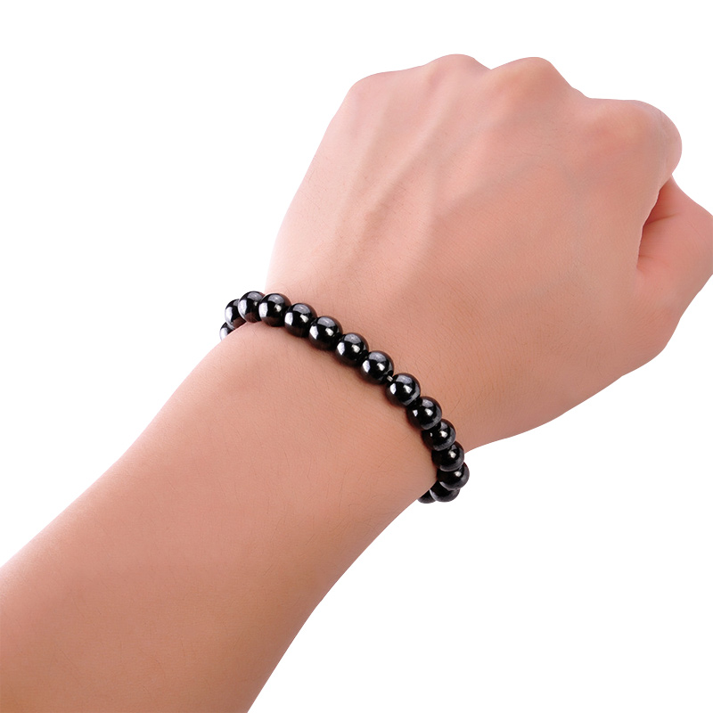 Channy Weight Loss Round Black Stone Magnetic Therapy Bracelet Health Care Magnetic Stretch Bracelet For Men Women